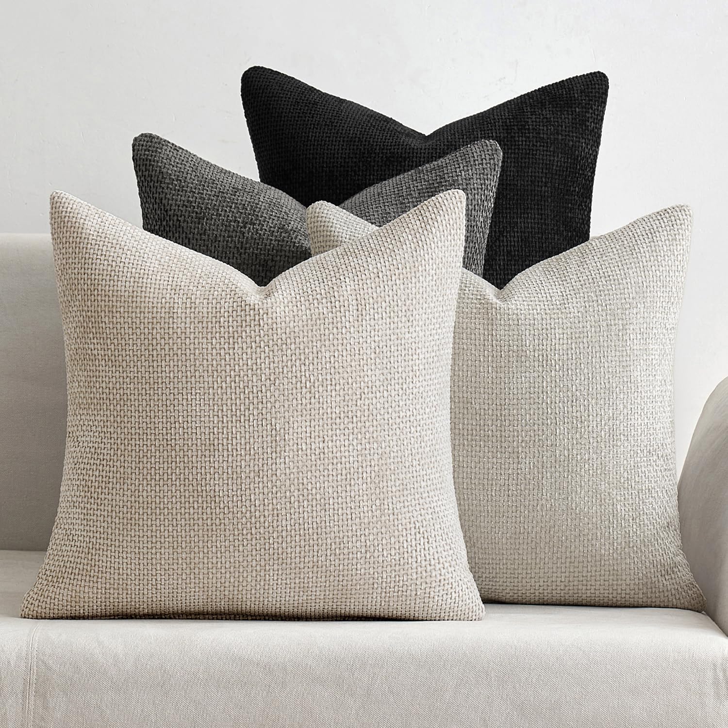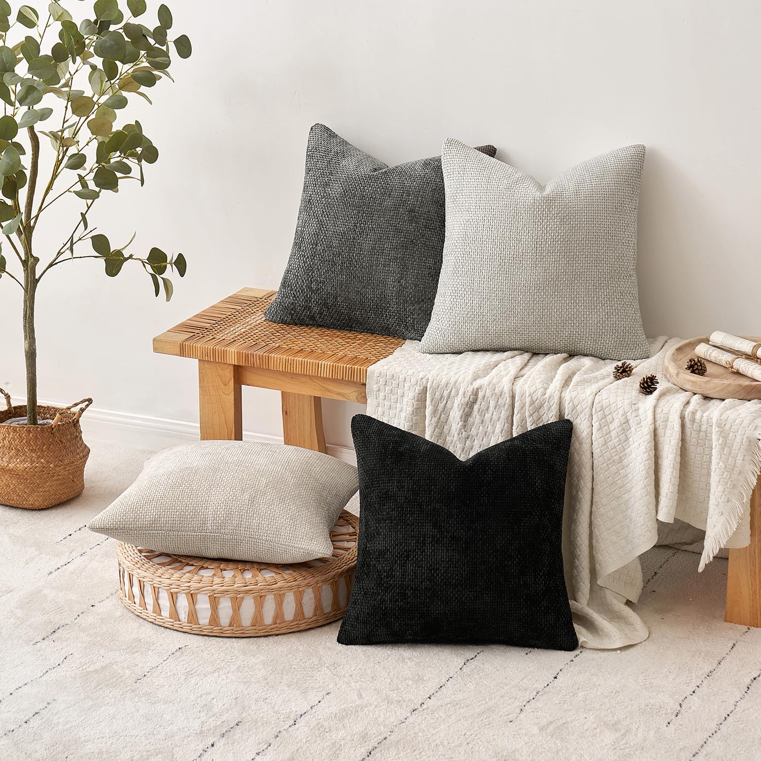 MIULEE Pack of 4 Couch Throw Pillow Covers 18x18 Inch Neutral Soft Decorative Chenille Pillow Covers Farmhouse Boho Cushion Covers for Mid Century Modern Home Decor Sofa Bedroom Living Room